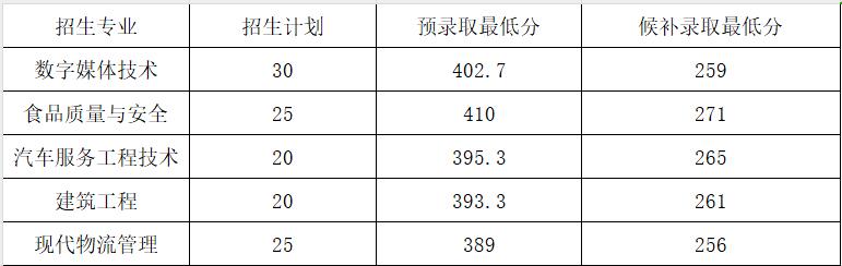 2024年上海中侨职业技术大学春季招生预录取及候补录取最低分数线