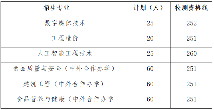 根据上海市教育考试院关于印发《2026年上海市普通高校春季考试招生实施办法》的通知(沪教考院高招〔2025〕29号)相关规定,结合考生志愿填报以及成绩分布情况,经学校招生领导小组研究决定,按照各招生专业(类)招生计划3倍的比例划定校测资格线,末位同分考生排序规则为:第1位序,比较语文加数学两门合计成绩高低,高者优先;第2位序,比较语文或数学中单科成绩高低,高者优先。现公布我校2026年春季考试招生各专业校测资格线: